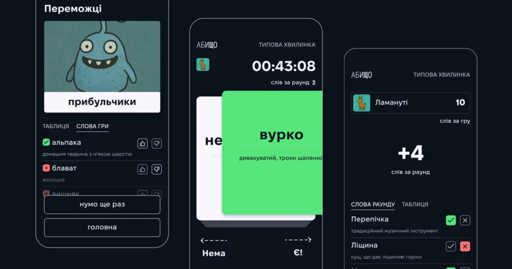 За рахунок того, що багацько слів є новими, або забутими для гравців, наприкінці кожного раунду можна подивитися, що то таке! Що воно там означає 🙂 Цей функціонал мене щиро посміхає, і дуже відгукується особисто. Все у одному місці, без необхідності Гуглу.
