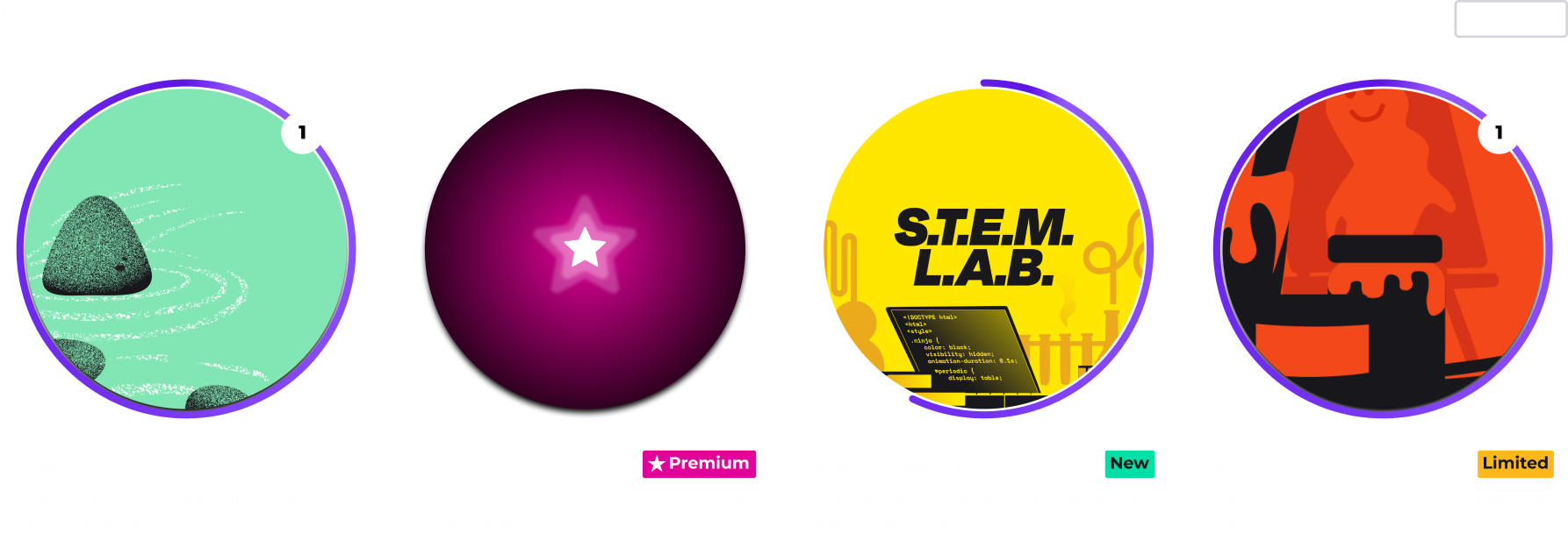 💡 The badge types are not visible in mini-view, and there’s a reason for that. The idea of having miniature case is to focus the attention on the badges themselves, not on the sponsored or standard per say. The reason is simple, the badges are all equal in experience, so we are not scaring off users from punching the paid content constantly. Curious how it looks like in the main Trophy Case? Here!