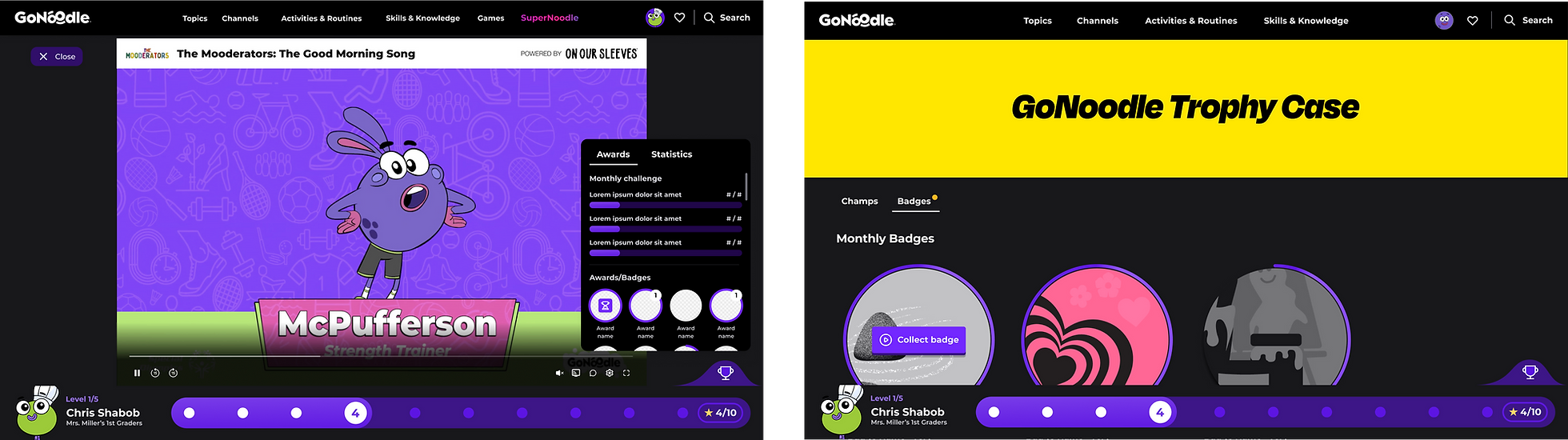 GoNoodle: Trophy Case & Gamification - making learning rewarding and fun