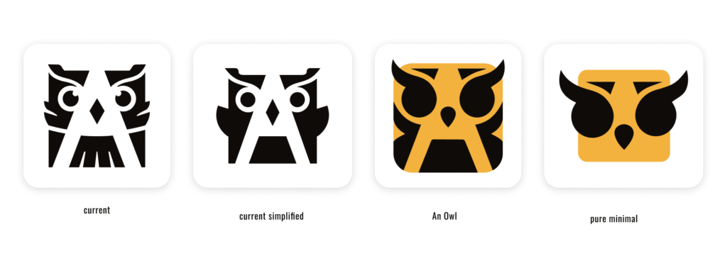 So for me, it was the key to find the way to show the expertise, experience, and passion. The next step we took to find the right owl’s look, Squared wanted to see her eyes, even though, it was a tiny tricky to implement. I was keeping in mind the minimalistic approach I wanted to maintain. It was crucial for small-size mark in use, so it won’t get mushy.
