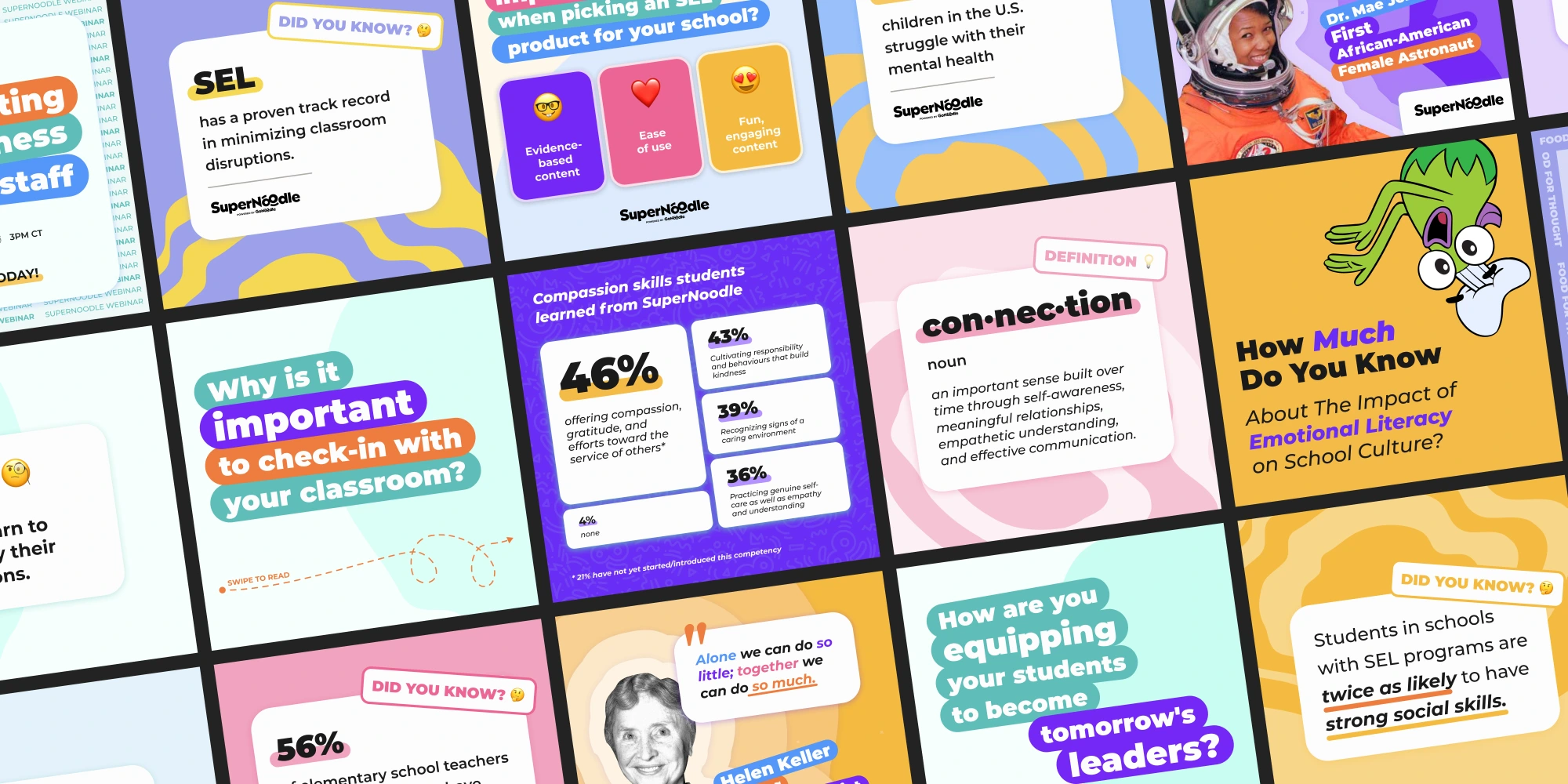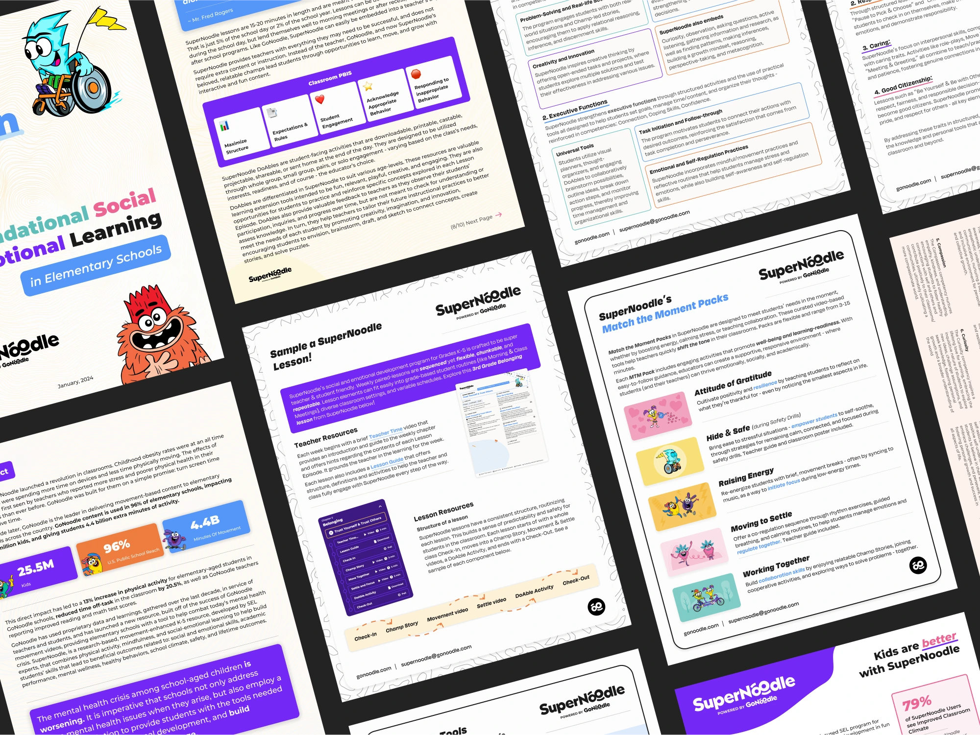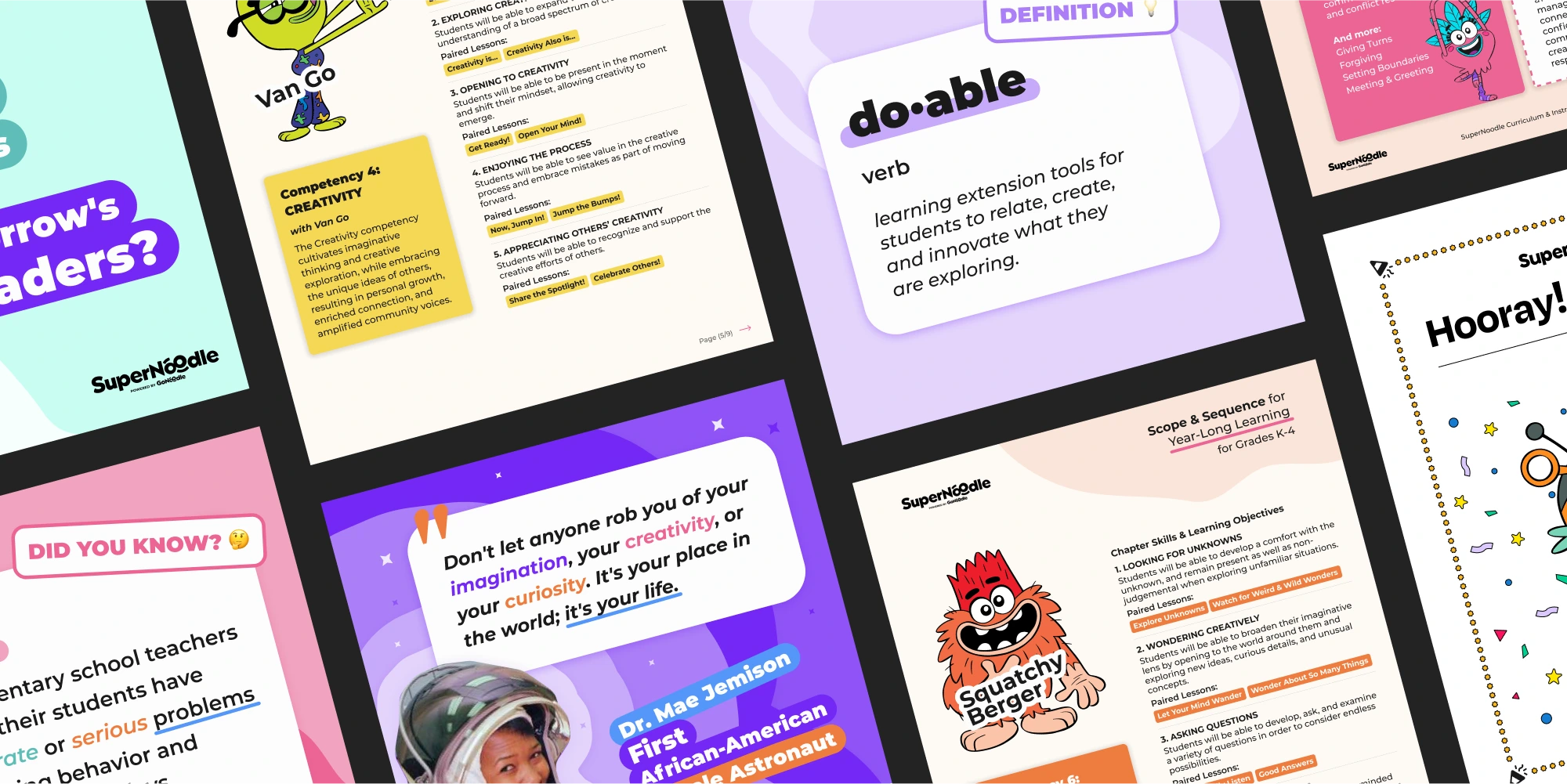 SuperNoodle’s curriculum went from concept to reality, giving educators nationwide structured, engaging, and visually cohesive materials that help students not just learn, but grow emotionally.