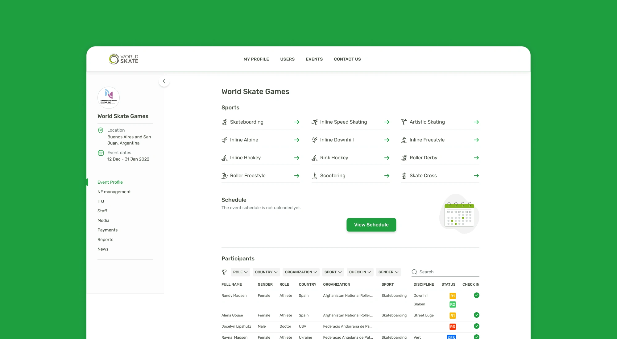 The platform successfully managed the World Skateboarding Tournament in Rome, 2022.